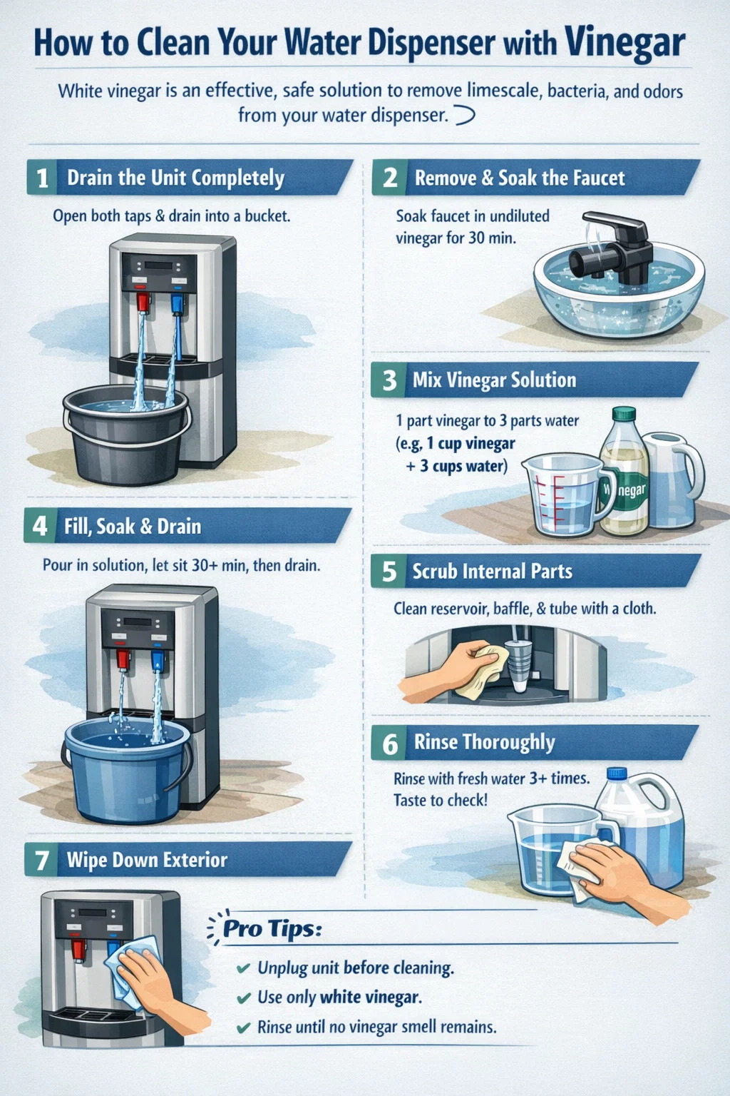 Steg-för-steg: Hur man rengör en vattendispenser med vinäger