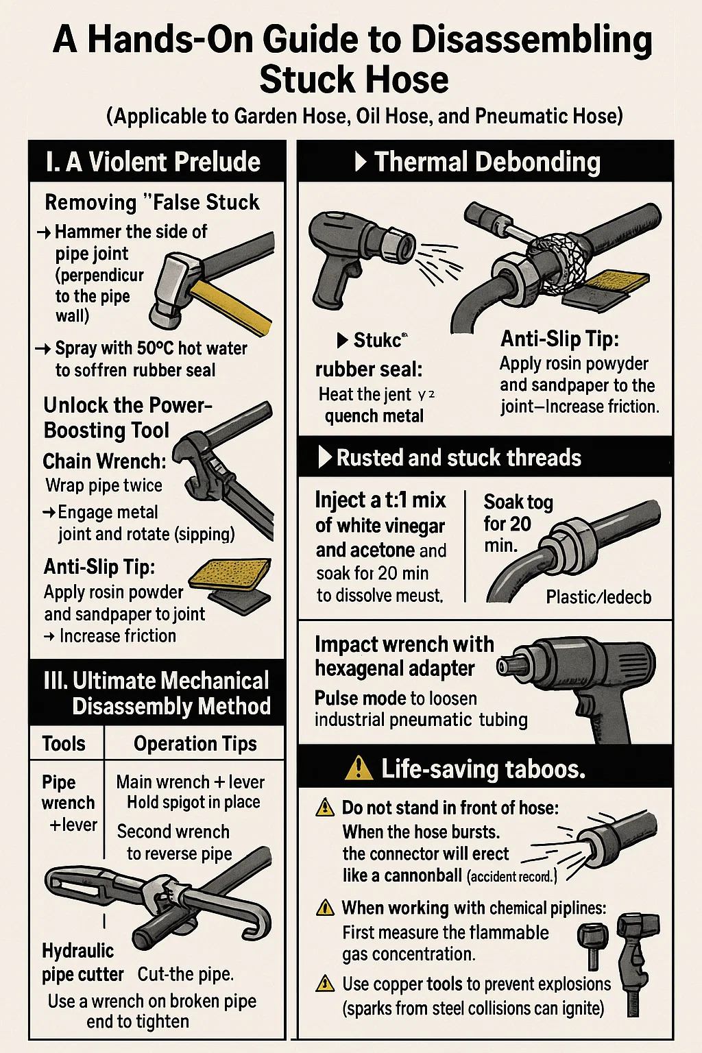 | Rörnyckelfusk | Lås primär skiftnyckel på tapp → Motgreppslang med andra skiftnyckel → Tvärmomentet | Metallslangbeslag | Fötter stagad bred-förhindrar ansiktsplantning när den lossnar |