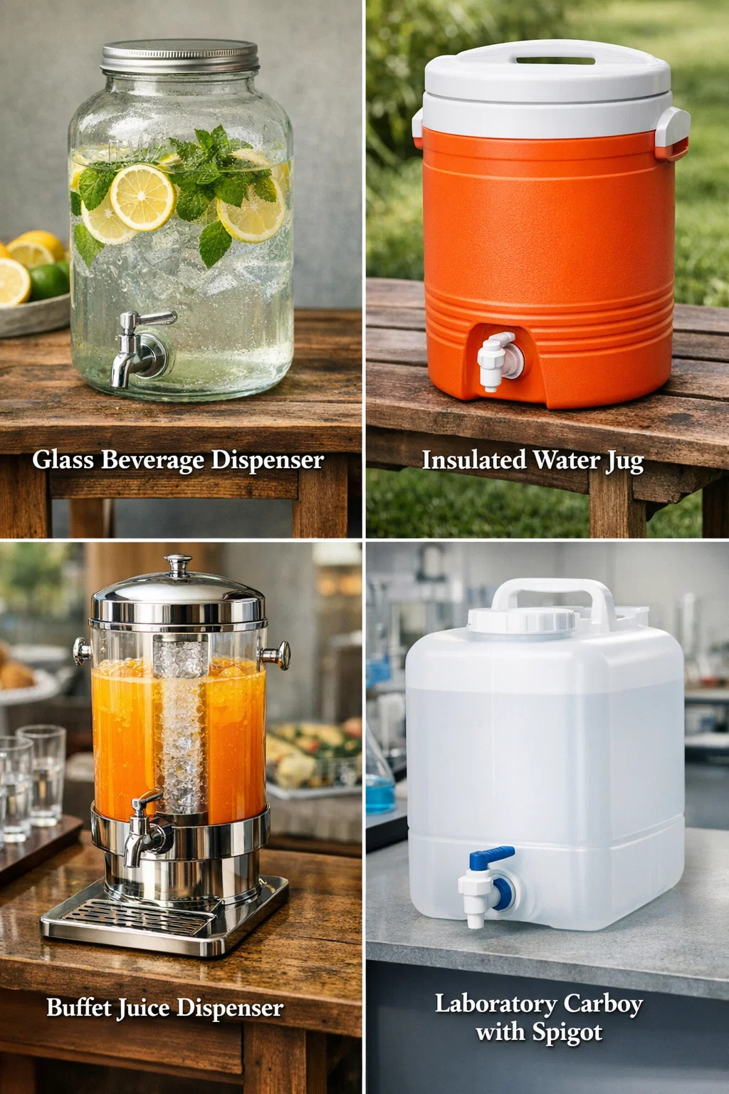 Vanligt bruk: Människor brukar kalla det en "drycksautomat i glas" eller "vattenautomat med kran." Eftersom det är genomskinligt ser det väldigt fint ut med isbitar, citronskivor eller myntablad inuti.