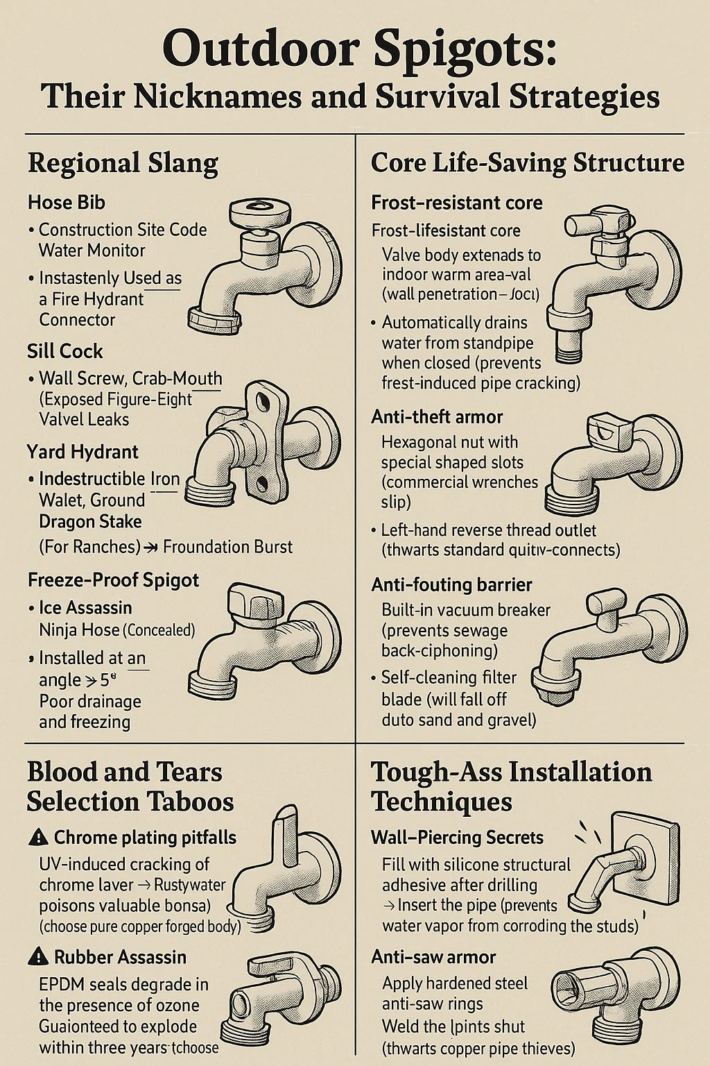 | Sill Cock | Wall-Slitherin' Snake | Crab Claw (exponerade stjälkar) | Fel invändiga gängor → svämmar in i väggar |