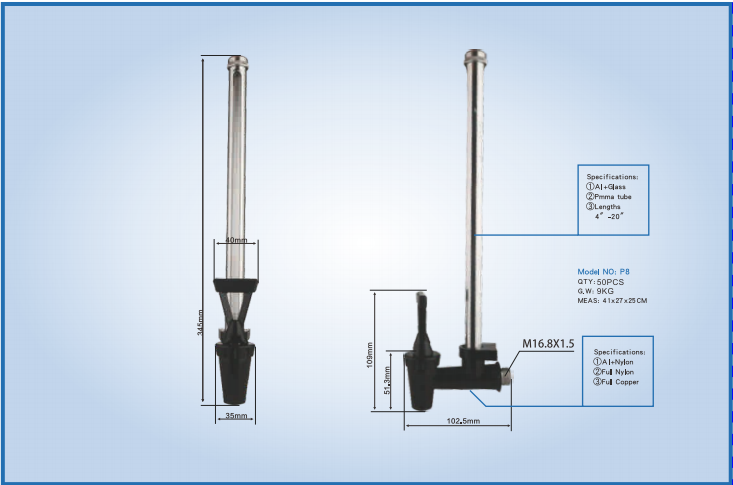 Denna tapp gör att du vet hur mycket vatten du ska lägga till enhet i rostfritt stål lättare. Högkvalitativ konstruktion. Glas eller PC siktrör kan välja, kommersiell kvalitet tapp.